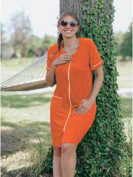 Peignoir zippé manches courtes "Prête à buller" 50H50- coloris mandarine