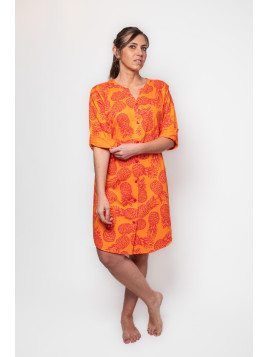 Prix 50,15 € Prix de base 59,00 €Chemise de Nuit Orange Boutonnée - "Ananas"