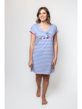 Prix 45,90 € Prix de base 54,00 €Chemise de Nuit Bleue - "Marin d'eau douce"