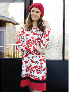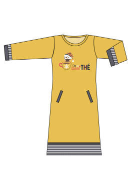 Elle est parée d'une encolure ronde, avec des manches raglan imprimées sapins argentés, ornés d'une broderie et d'une sérigraphie  sur le bas juste au-dessus  d'une petite bande imprimée comme les manches pour une touche de couleur.