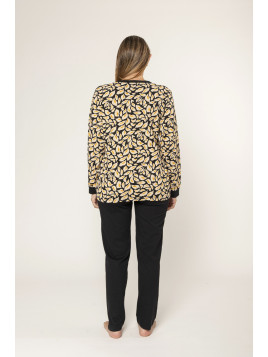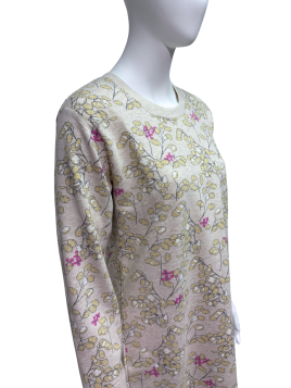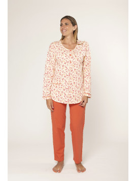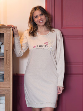 Découvrez ce sublime pyjama à manches longues de notre collection "Lunaire". Le haut est beige à motifs fleurs, ou vous retrouverez des tons de violet. Le bas en de couleur beige et uni.