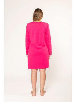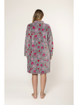 Cette chemise de nuit présente un imprimé "pattes" multicolore dans des nuances de rose sur un fond gris. Ce motif ludique apporte une touche de fantaisie à votre tenue de nuit.