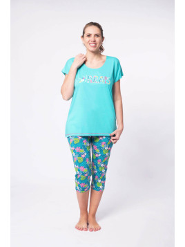 Pyjama haut turquoise manches courtes et bas imprimé « Mon...