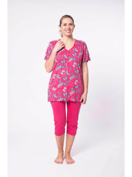Pyjama haut rouge manches courtes et bas imprimé « Tulipes »