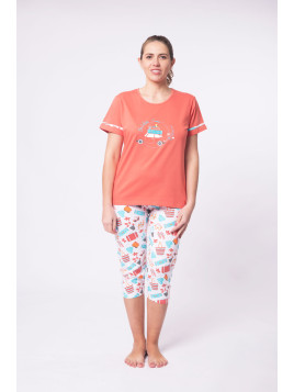 Nous vous présentons le nouveau pyjama « Jazz ». Le tee-shirt rouge, orné d'une encolure tunisienne à trois boutons, sa poche poitrine garnie d'un passepoil marine et une sérigraphie au motif "musique" sur le bas.