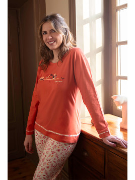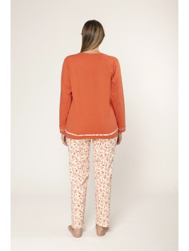 Pyjama orange - Imprimé feuilles « Je Reste au Chaud »