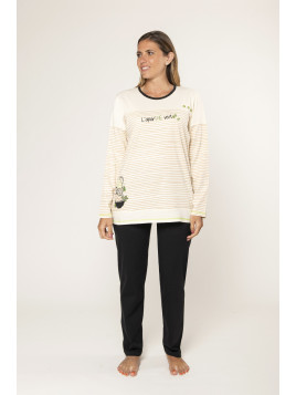 Pyjama haut rose manches courtes et bas imprimé « La sieste...