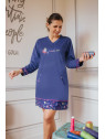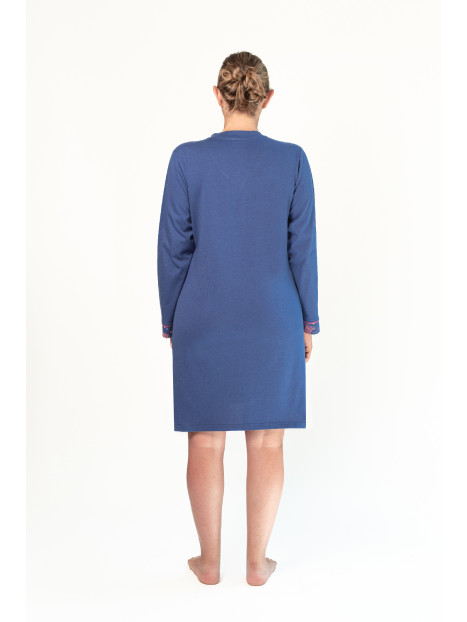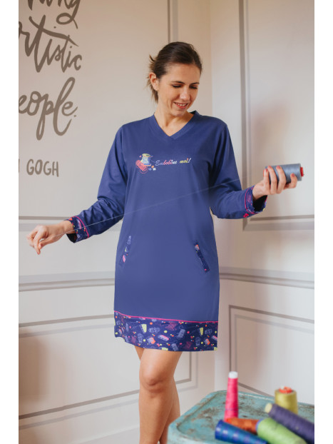 Cette ravissante liquette, dans le coloris bleu électrique, possède des empiècements imprimés aux poignets ainsi que sur le bas devant. Le motif est composé de divers graphismes représentants des bobines de fils multicolores.