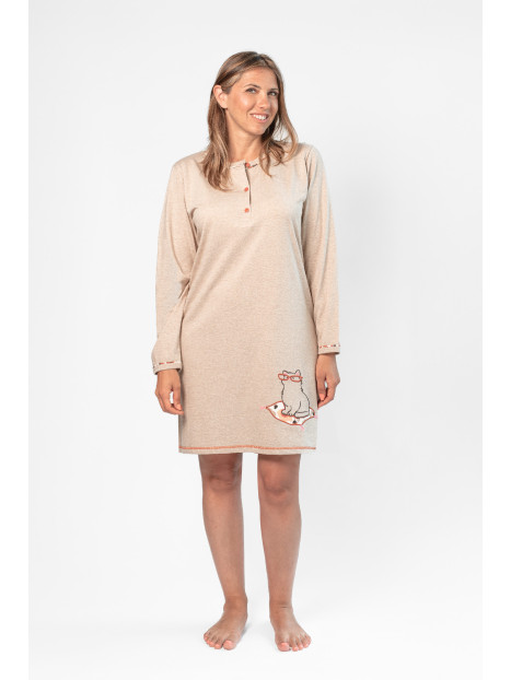 Cette liquette en jersey chiné, possède une broderie fantaisie de chat avec des lunettes. Cette dernière est située sur le bas devant.