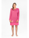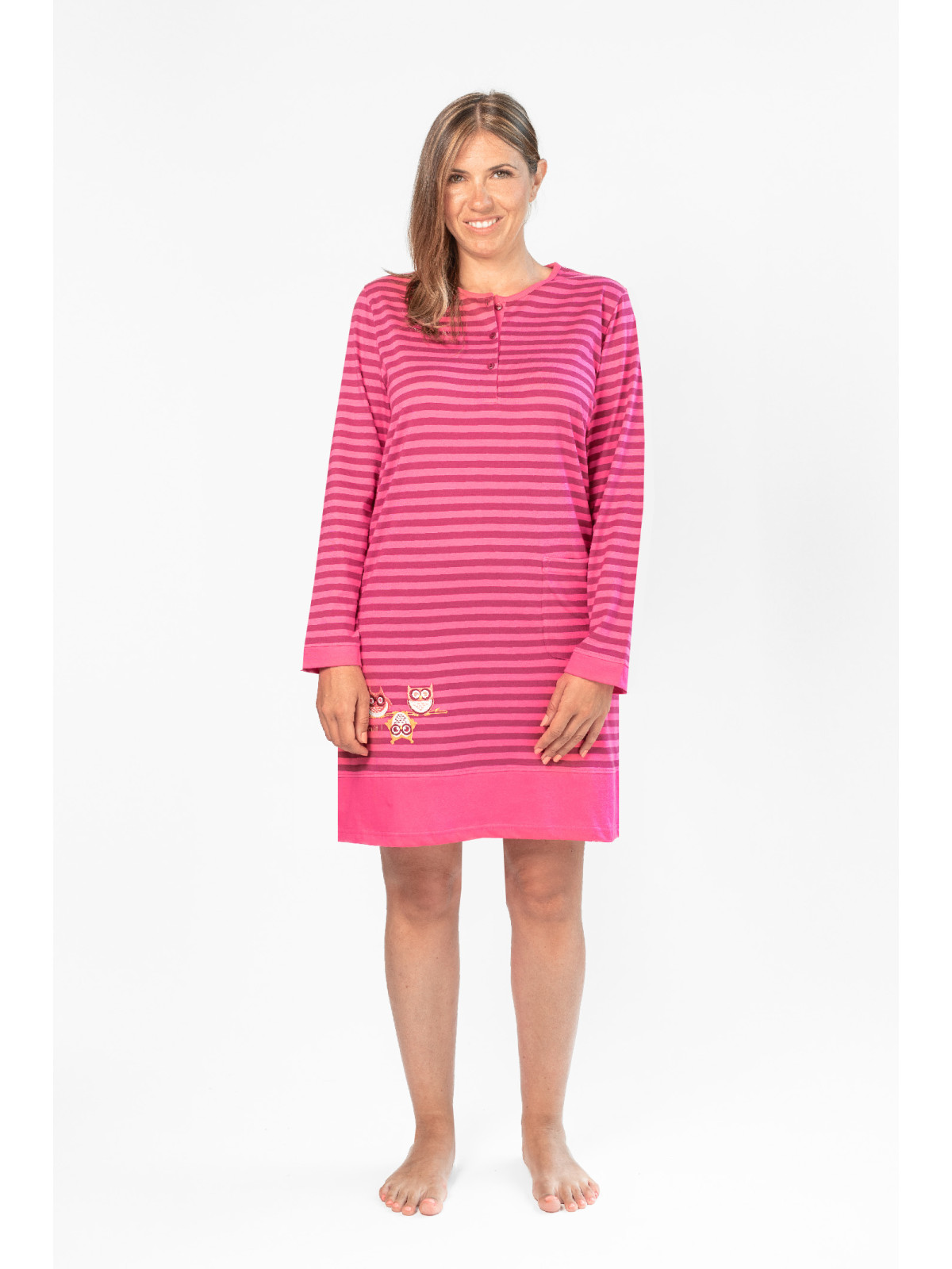 Cette liquette en jersey rayé, possède une broderie humoristique placée sur le bas devant. Elle est composée de chouettes alignées sur une branche, accompagnée de la phrase "Chouettes Nuit".
