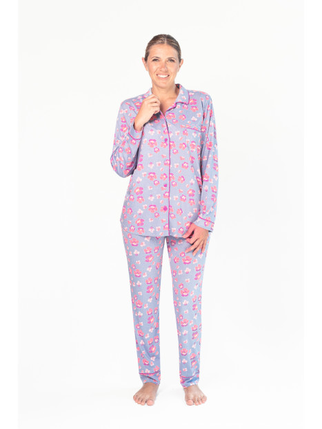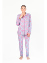 Ce pyjama se compose d’un haut imprimé entièrement boutonné. Il présente un col chemise. Le bas est arrondi.
