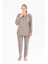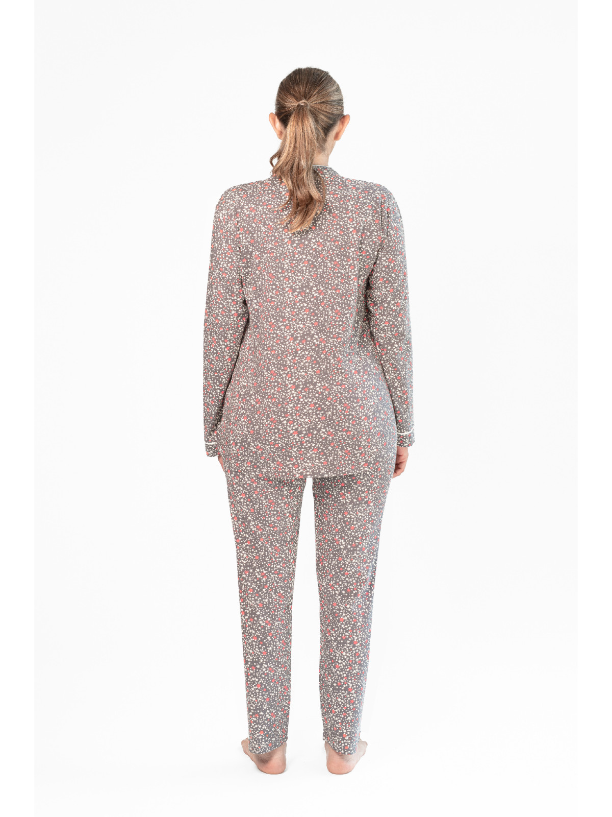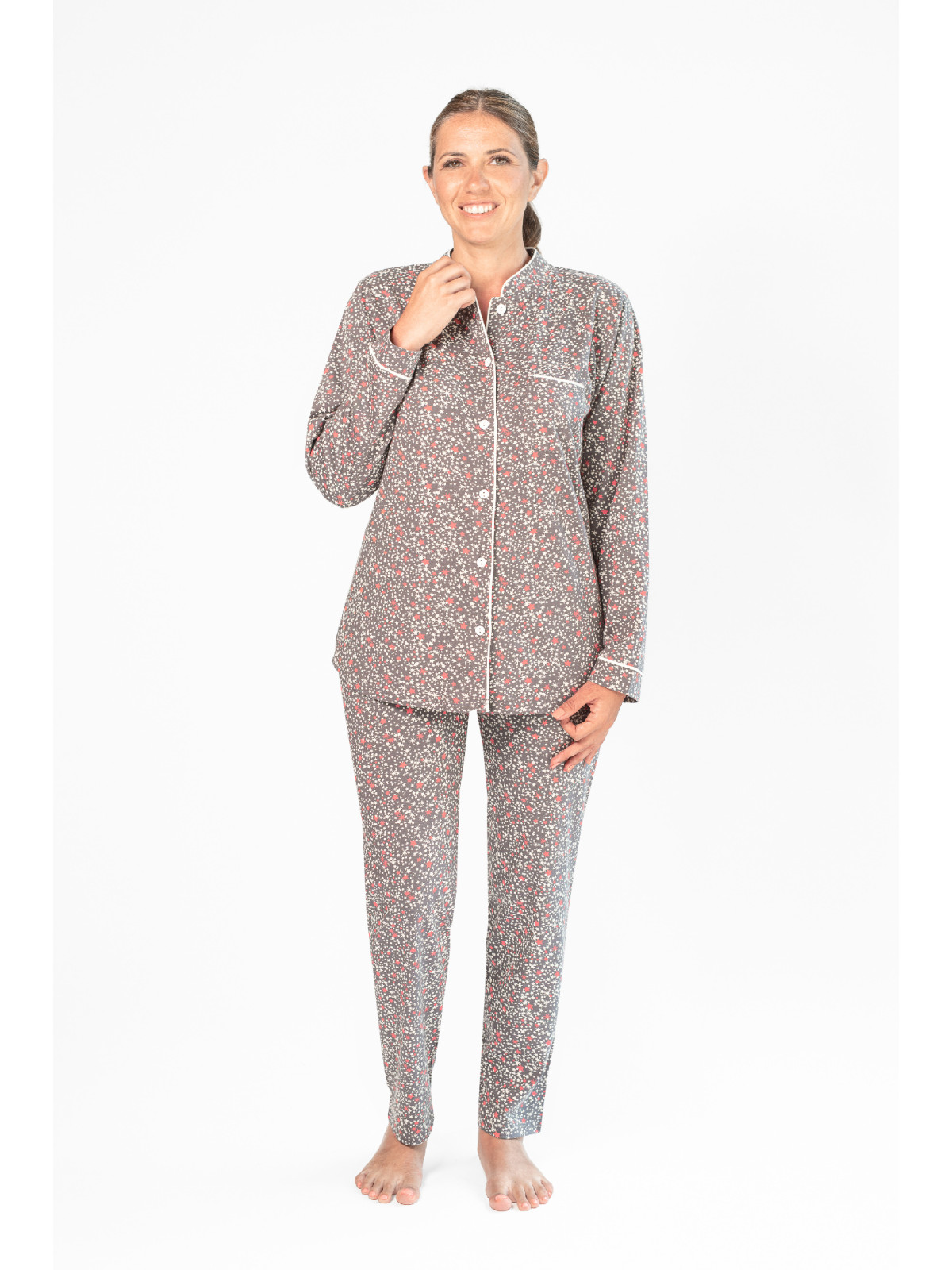 Ce pyjama se compose d’un haut imprimé entièrement boutonné. Il présente un col montant. Le bas est arrondi.