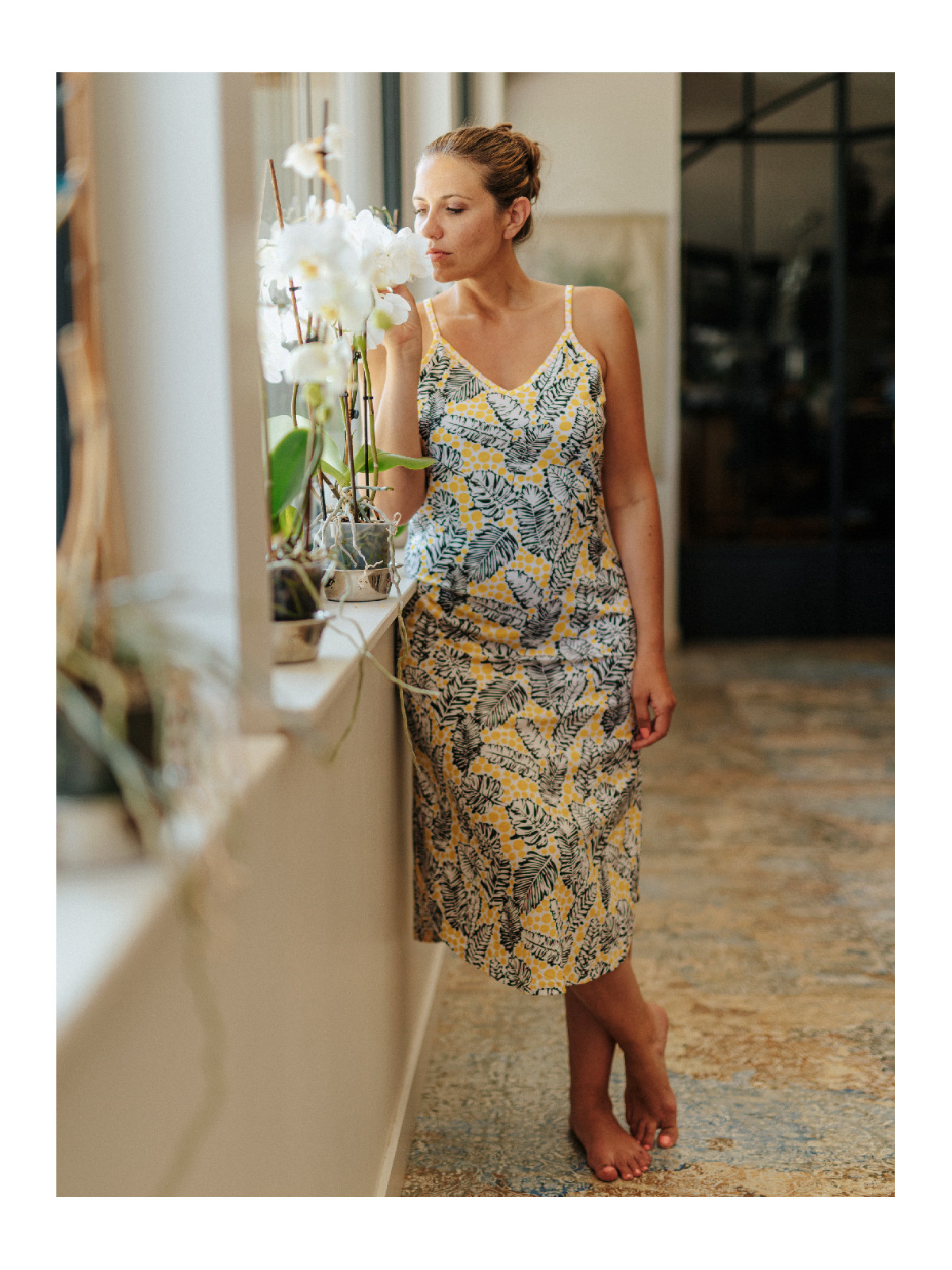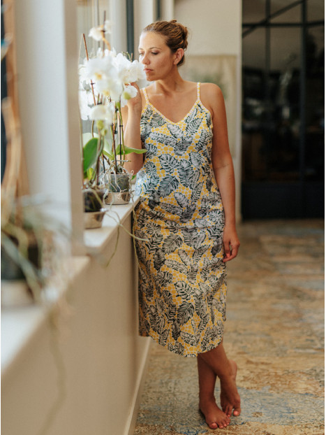 Envie d’une nuisette longue et féminine, découvrez notre nuisette imprimée «Sous les Tropiques».