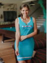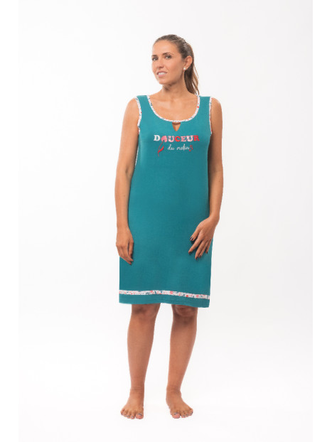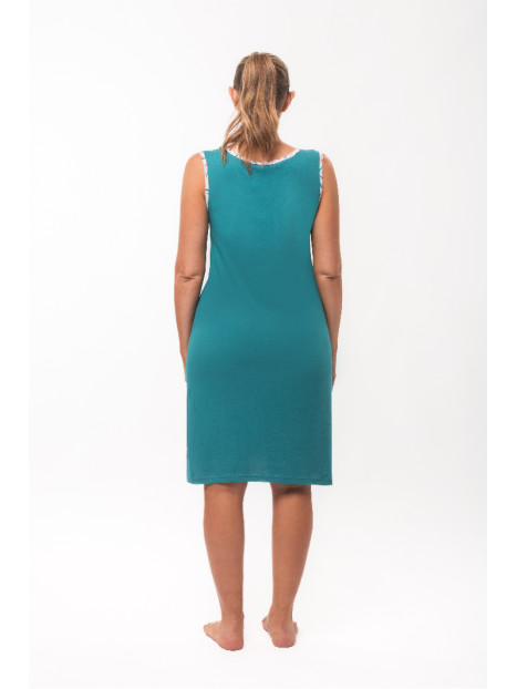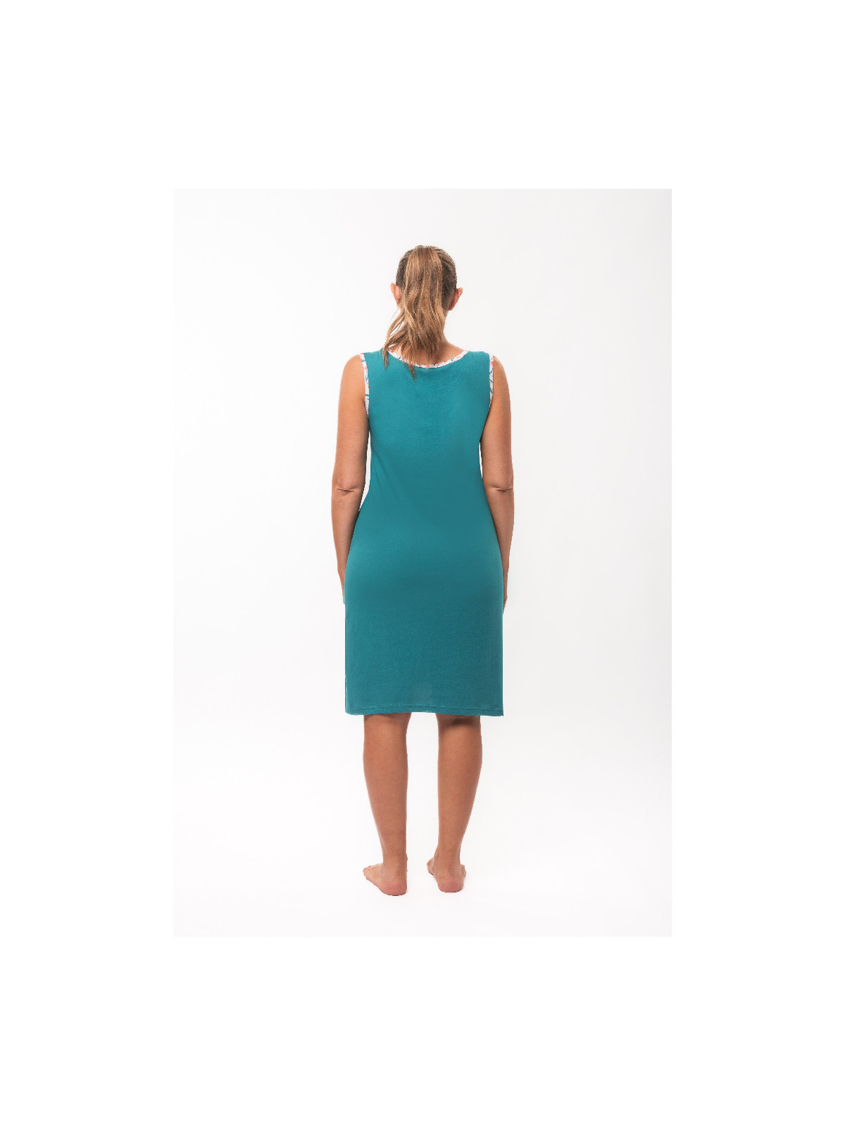 Des bordages en jersey imprimé, placés aux emmanchures et à l'encolure viennent illuminer l'article.