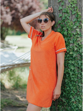 Ses bordages mandarine apportent une touche de peps à l'encolure et aux bas de manche.