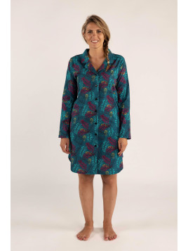 Plongez dans le confort avec cette robe de chambre boutonnée de la collection "Chat m'branche". Sa couleur verte apaisante et son design élégant en font l'alliée parfaite pour vos moments de détente. -