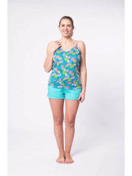 Pyjama short haut jaune et bas imprimé « La vie est belle »