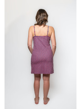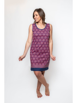 Plongez dans un océan de douceur avec cette nuisette à bretelles fines, parfaite pour des nuits tout en confort et en élégance. Son imprimé géométrique raffiné en rouge, bleu et blanc lui confère un style moderne et féminin. La coupe fluide et l'encolure délicatement arrondie apportent une touche de sensualité tout en garantissant un confort optimal.